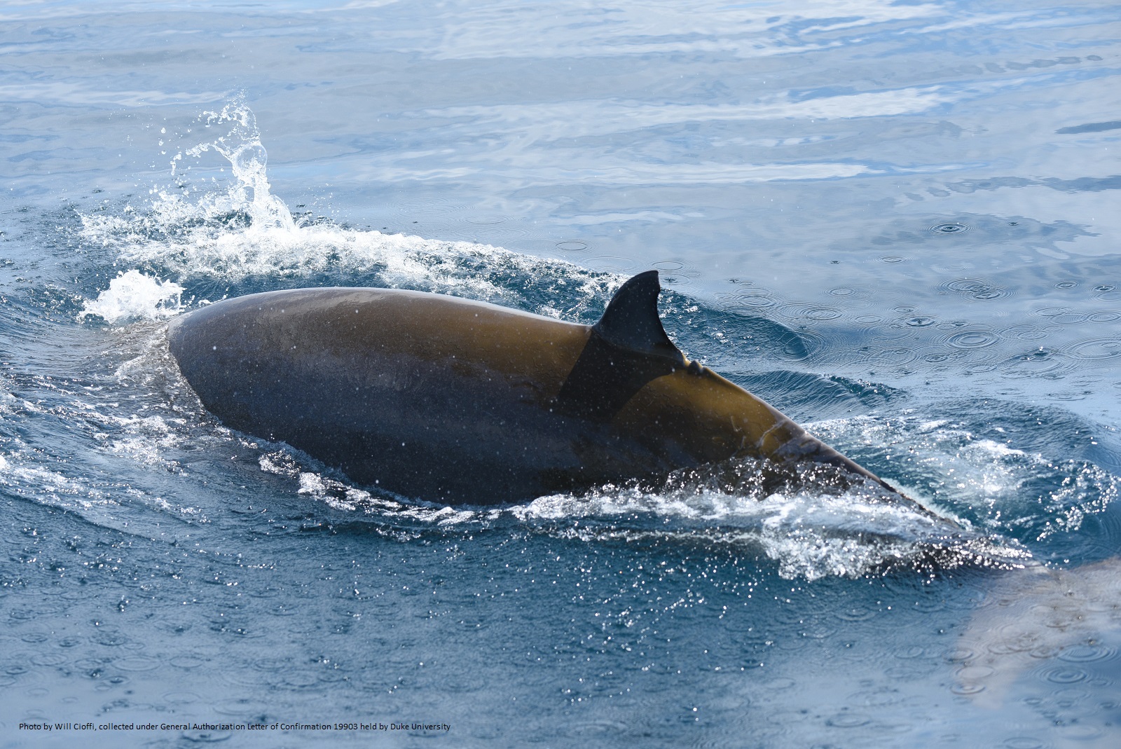 The following day, photographs of the pair were shared with our colleagues at Duke University who maintain a catalog of Cuvier’s beaked whales from their research efforts off Cape Hatteras, North Carolina. Danielle Waples compared the two individuals to their catalog, and was able to identify the female as Zca107, seen by their research team on 9 August 2020. This was the only sighting of the female, who has a distinctive dorsal fin shape and trailing edge notch. The male had not been previously identified but was added to their catalog. The sightings occurred just over 2 years apart, approximately 62 NM from one another.