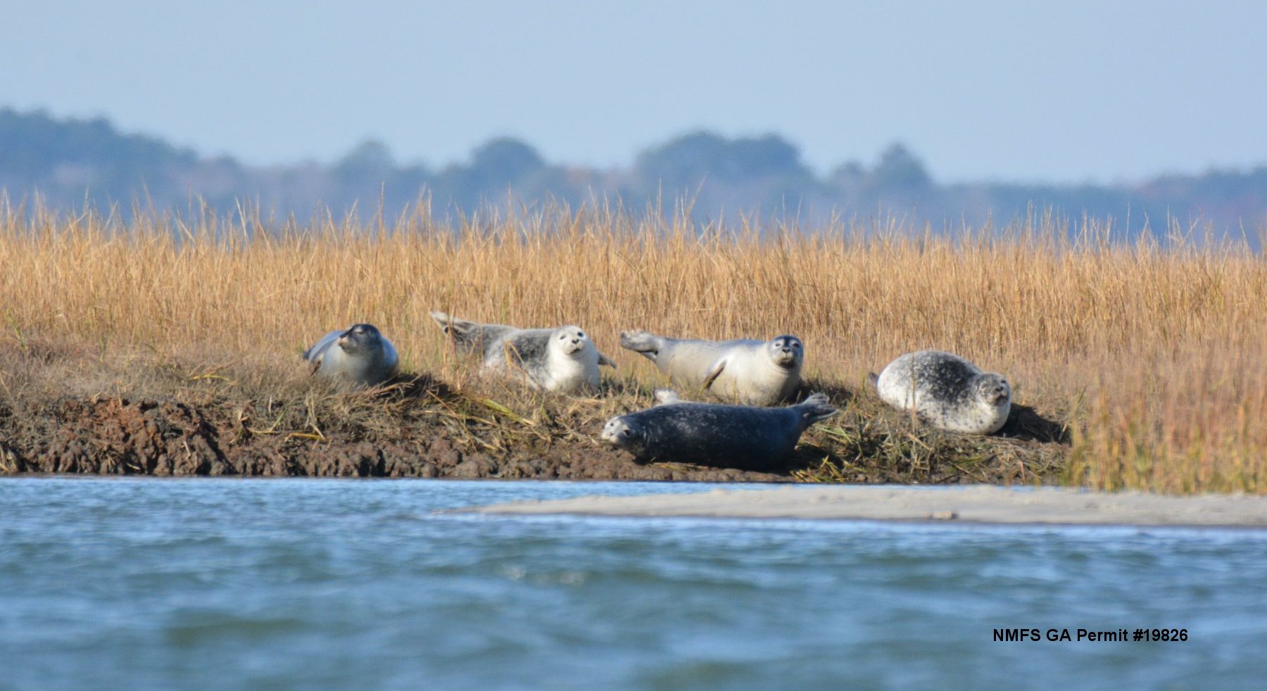 A group of seals hauled out on the Eastern Shore of Virginia. Photo by Danielle Jones taken under NMFS permit 19826 to Tara Moll.