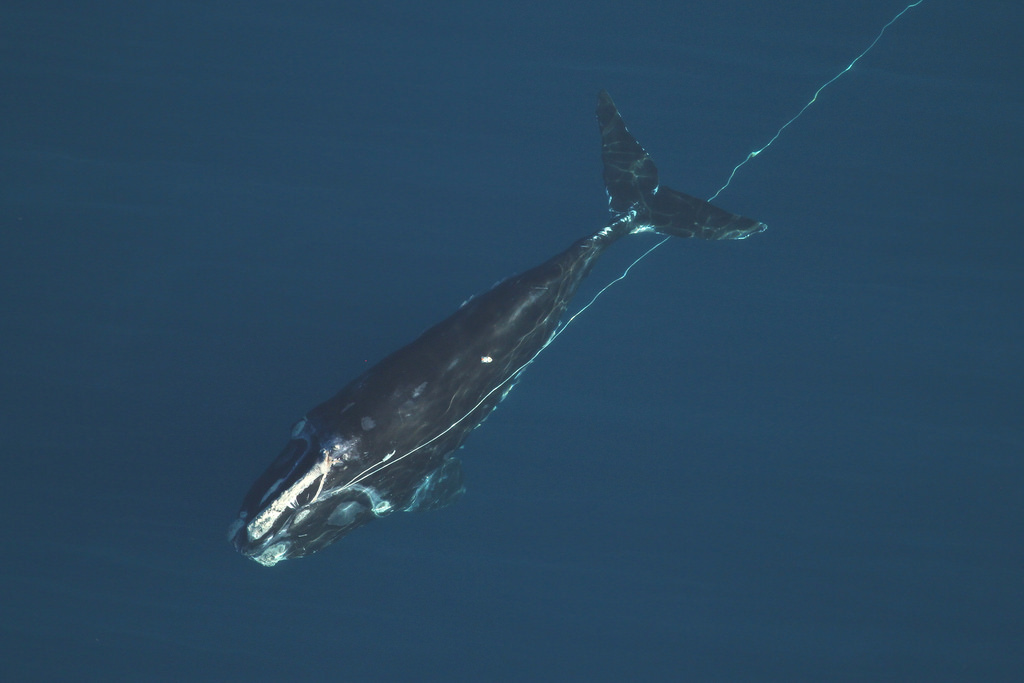 On February 17th the whale was relocated with the telemetry buoy approximately 60 miles north of its last know location the previous day. The FWC aerial survey team located the animal and researchers from FWC and Georgia Department of natural Resources were able to make an attempt at disentanglement. Most of the line was successfully removed and it is hoped that the whale will be able to shed the rest of the gear itself.