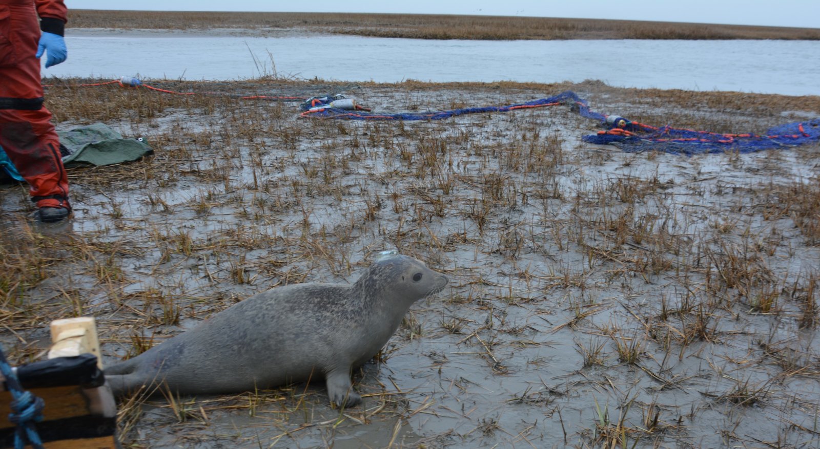 Team members from Naval Facilities Engineering Command Atlantic, Naval Undersea Warfare Center Division Newport, the Atlantic Marine Conservation Society, Virginia Aquarium, HDR, Inc., The Nature Conservancy, Virginia Department of Game and Inland Fisheries, and the National Marine Fisheries Service spent months planning and problem solving to finally have success satellite tagging seals in Virginia. The Navy has been interested in tagging harbor seals because our current understanding of their habitat use in the mid-Atlantic is limited. Navy training and testing activities occur in areas that likely overlap with harbor seals in this region, therefore, it’s important to assess any potential impacts these activities may have.