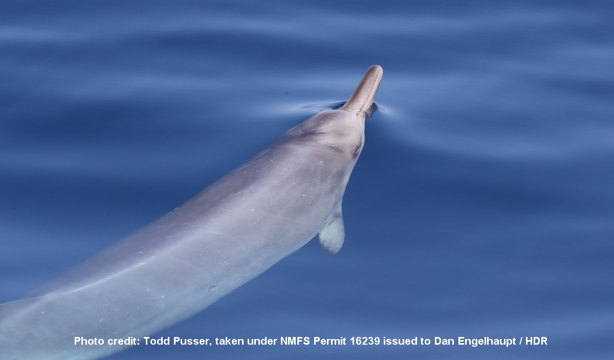 Scientists from HDR and NAVFAC Atlantic had a rare and exciting encounter during a recent survey conducted for the Mid-Atlantic Continental Shelf Break Cetacean Study - a group of three Sowerby’s beaked whales (Mesoplodon bidens). The group was sighted approximately 85 miles offshore of the Eastern Shore of Virginia, about halfway between the Norfolk and Washington Canyons, and represents one of the southern-most records of this species.