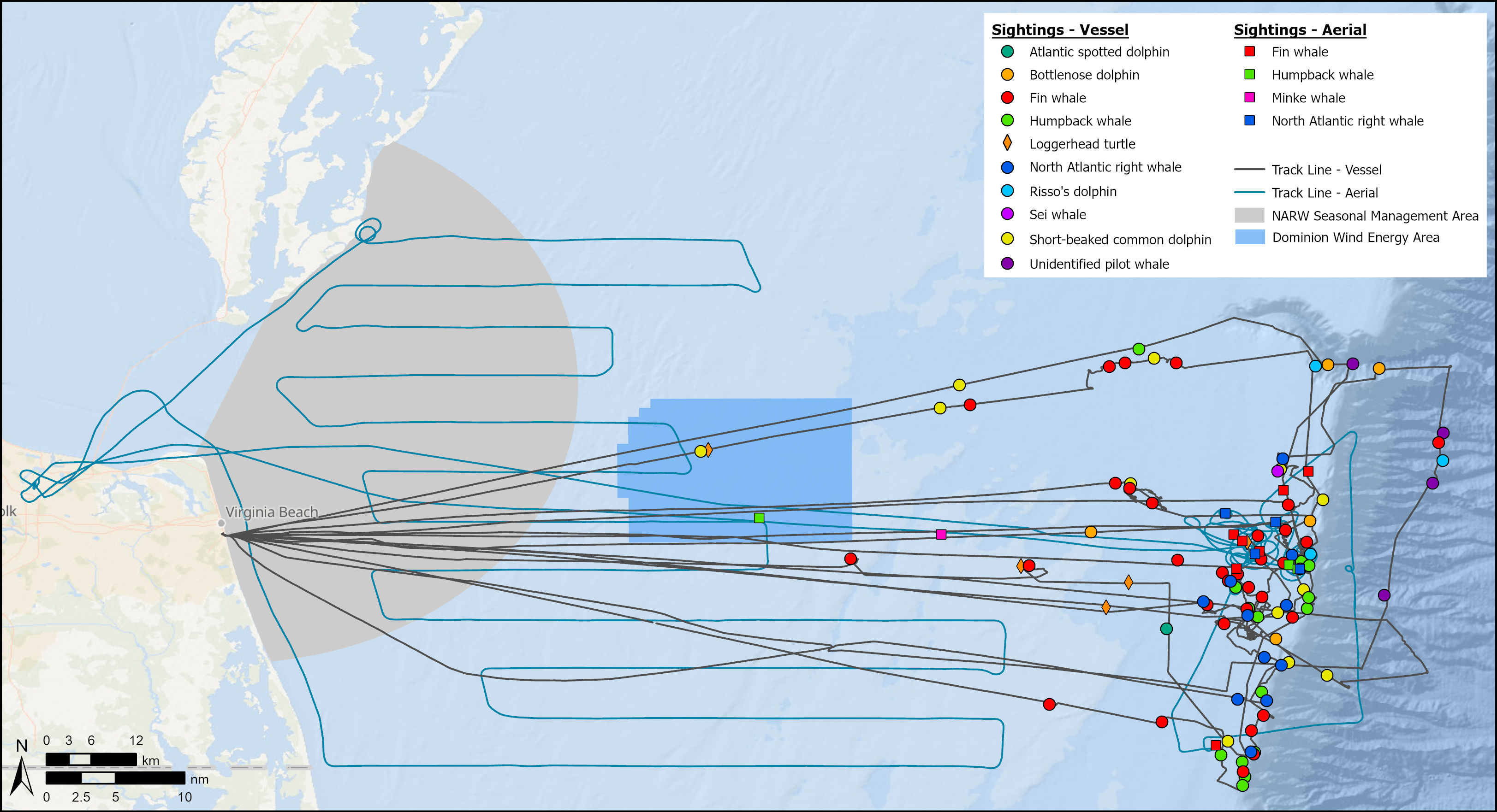 Overview of sightings from five offshore surveys conducted 22 May to 1 June 2024